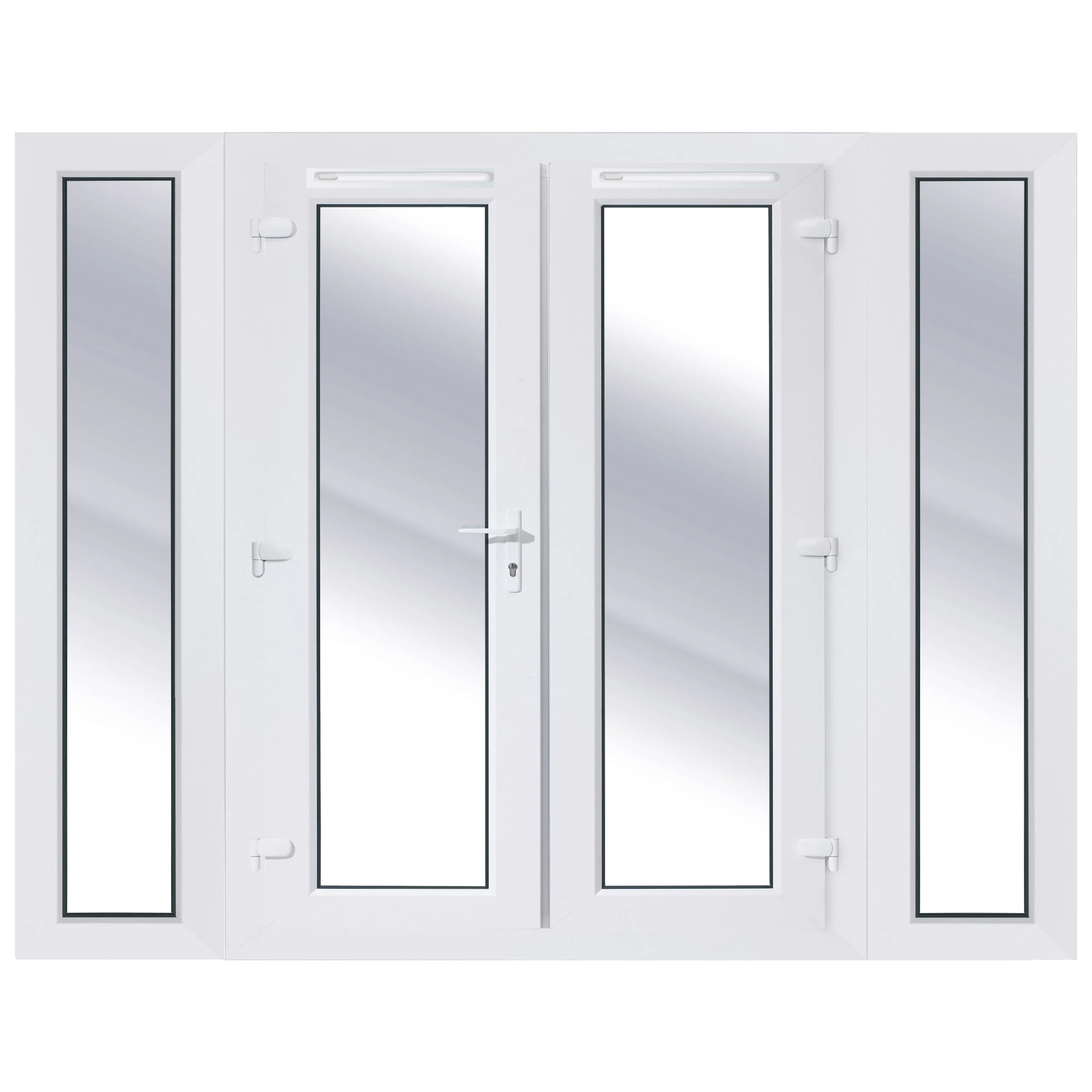 - 2 x 300mm sidelights, threshold, cill, frame, multi-point lock and handles