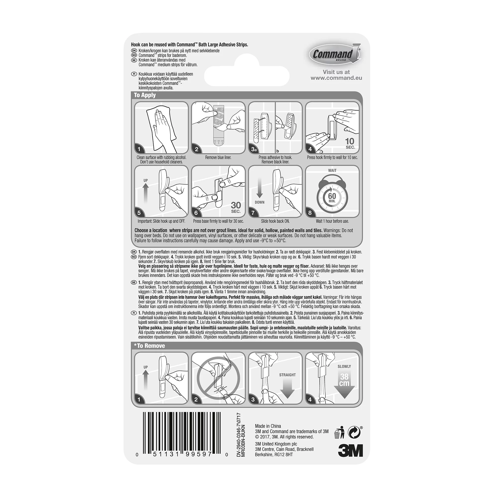 Command™ Modern Reflections Large Bath Hook comes with a water-resistant strips and is an innovative solution for hanging kitchen equipment and other heavy objects in wet and humid places securely and damage free. They hold strongly and remove cleanly using 3M stretch-release technology.