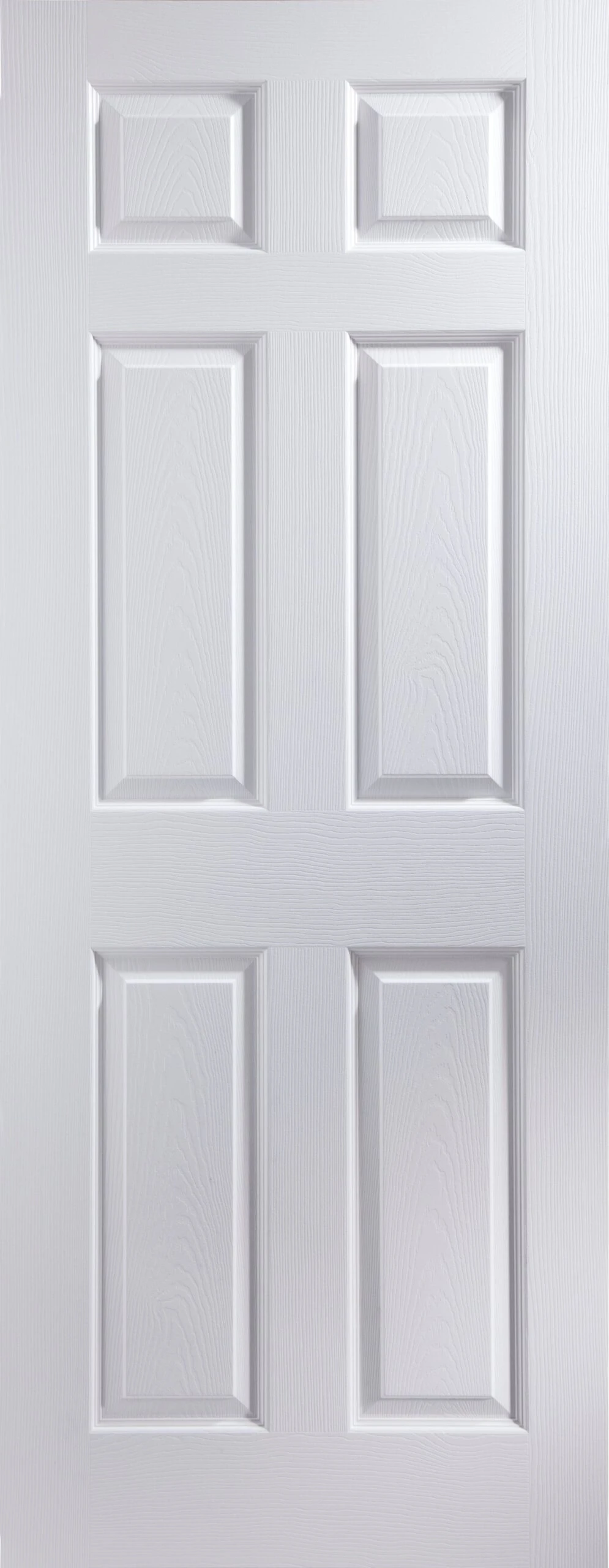 This popular six panel woodgrain effect internal door offers great value for money and is supplied primed ready for painting.