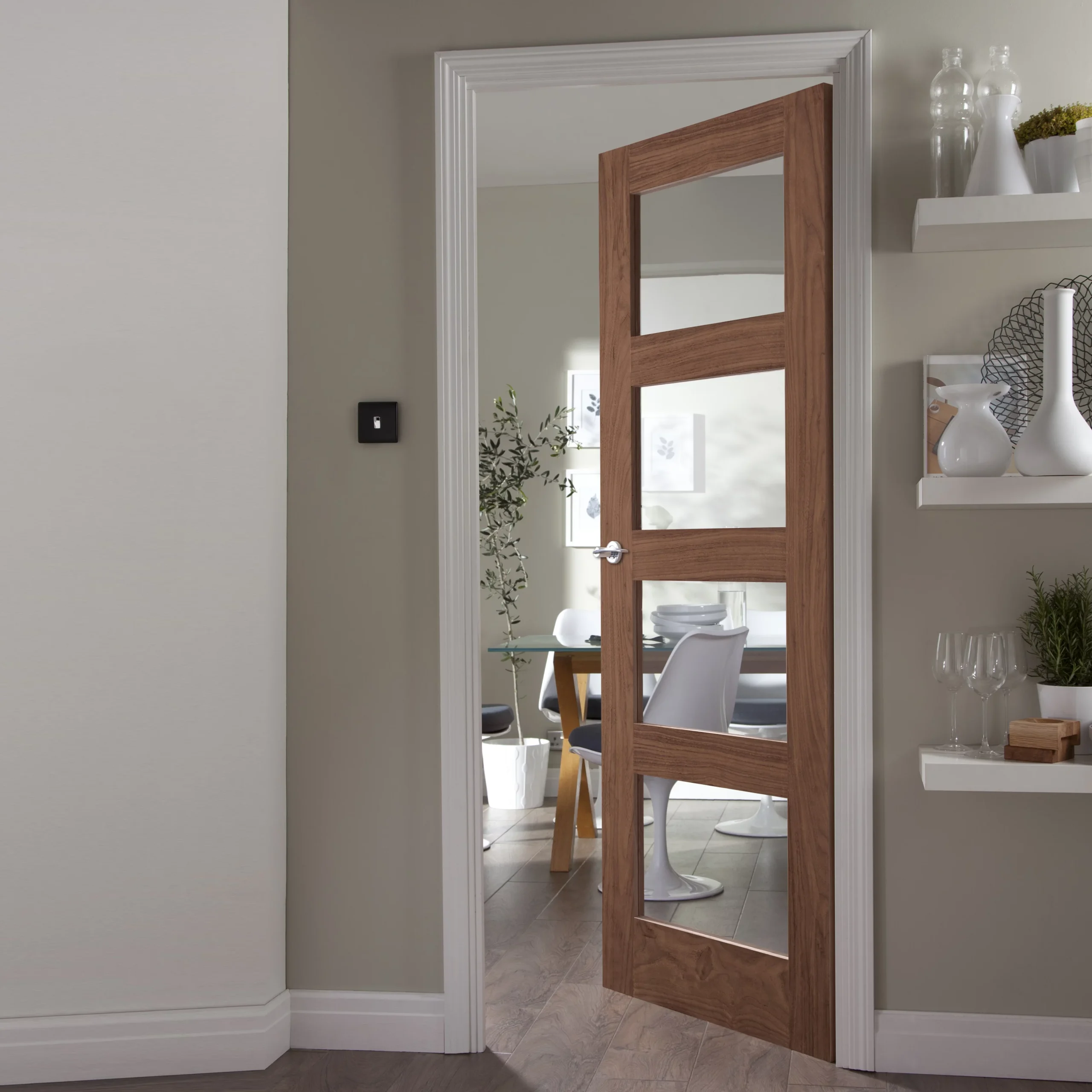 Allows light to penetrate through from one space to another which is ideal for dark hallways