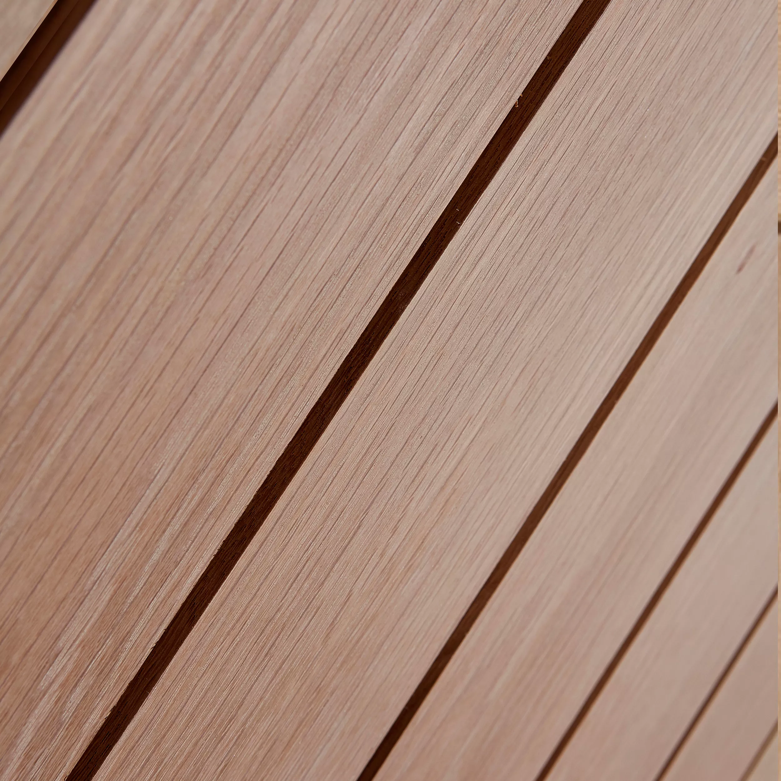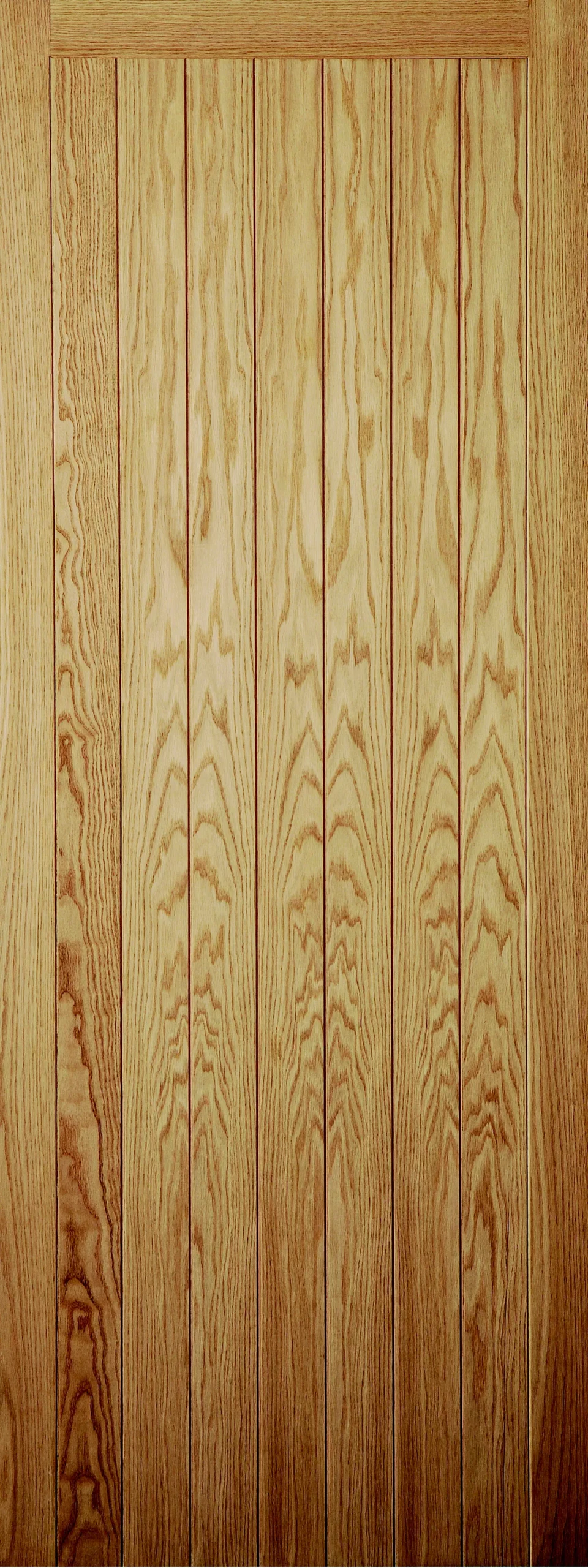 This framed ledged and braced door is supplied with fixed decorative timber braces on one side and vertical tongue and groove panelling on the other. This door is finished with white oak veneer for a striking appearance.