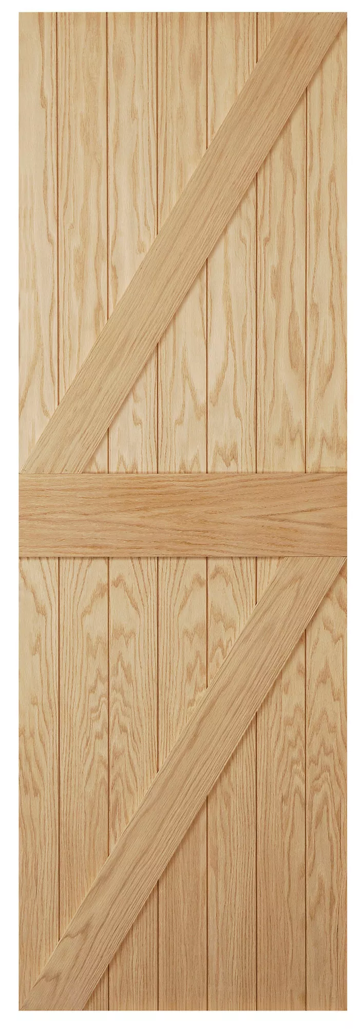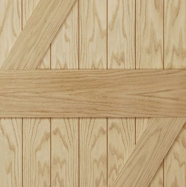 This ledged and braced door is supplied with loose pinned timber braces, this allows for appropriate fixing depending if you are fitting the hinges to the left or right hand side of the door. This door is finished with white oak veneer for a striking appearance & can be used in a variety of applications including as an entrance door for an outbuilding or side entrance gate.