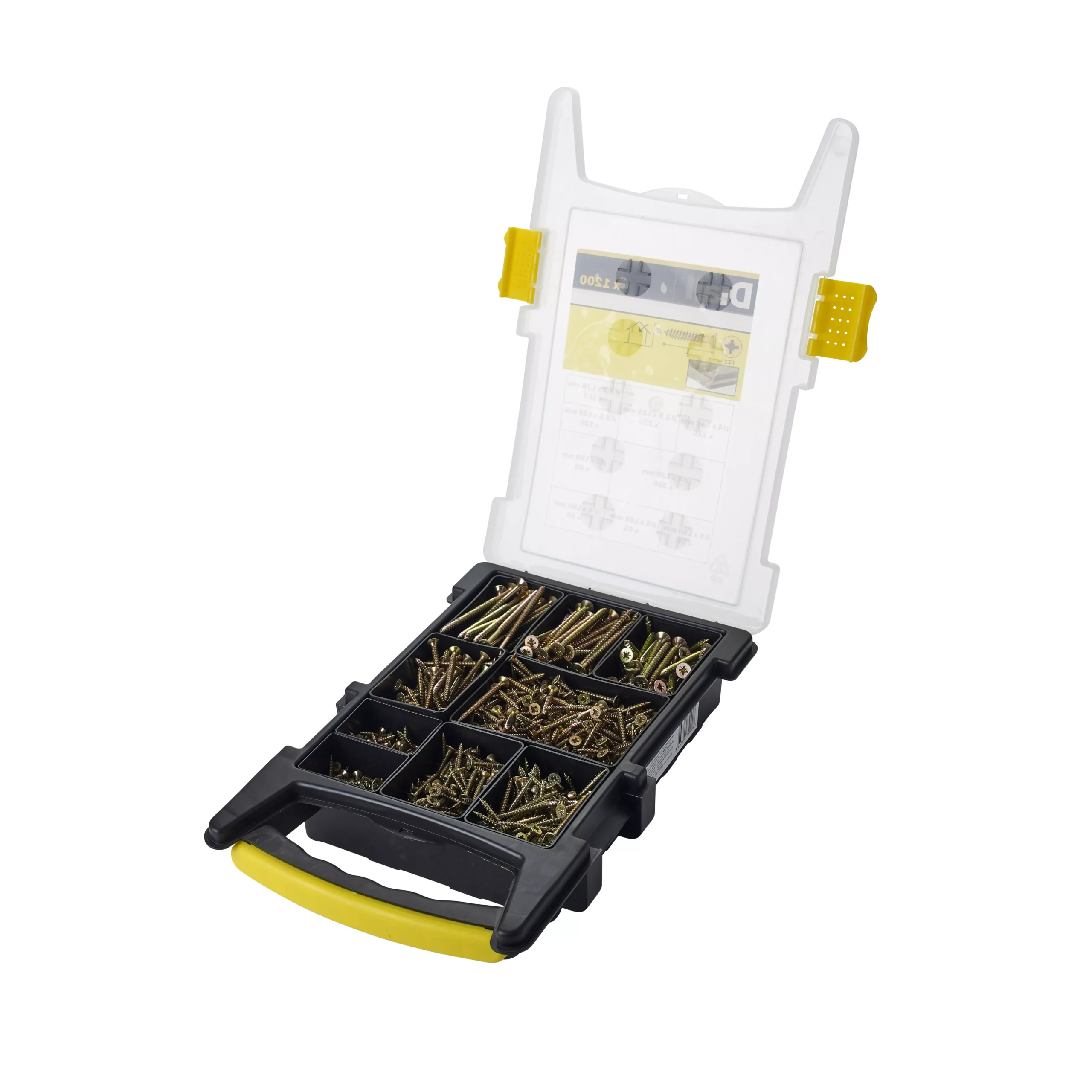 This pack of 1200 assorted yellow zinc plated double countersunk wood screws are constructed from durable steel. Whether you need an 150x (3.5 x 16mm), 130x (3.5 x 20mm), 220x (3.5 x 25mm), 350x (4 x 30mm), 120x (4 x 40mm), 80x (4 x 50mm), 65x (5 x 50mm), 55x (5 x 60mm), 30x (5 x 80mm) screw or 2x driver bits you will be prepared for the job. Recommended for use on plasterboards. This pack is ideal for a range of DIY projects.
