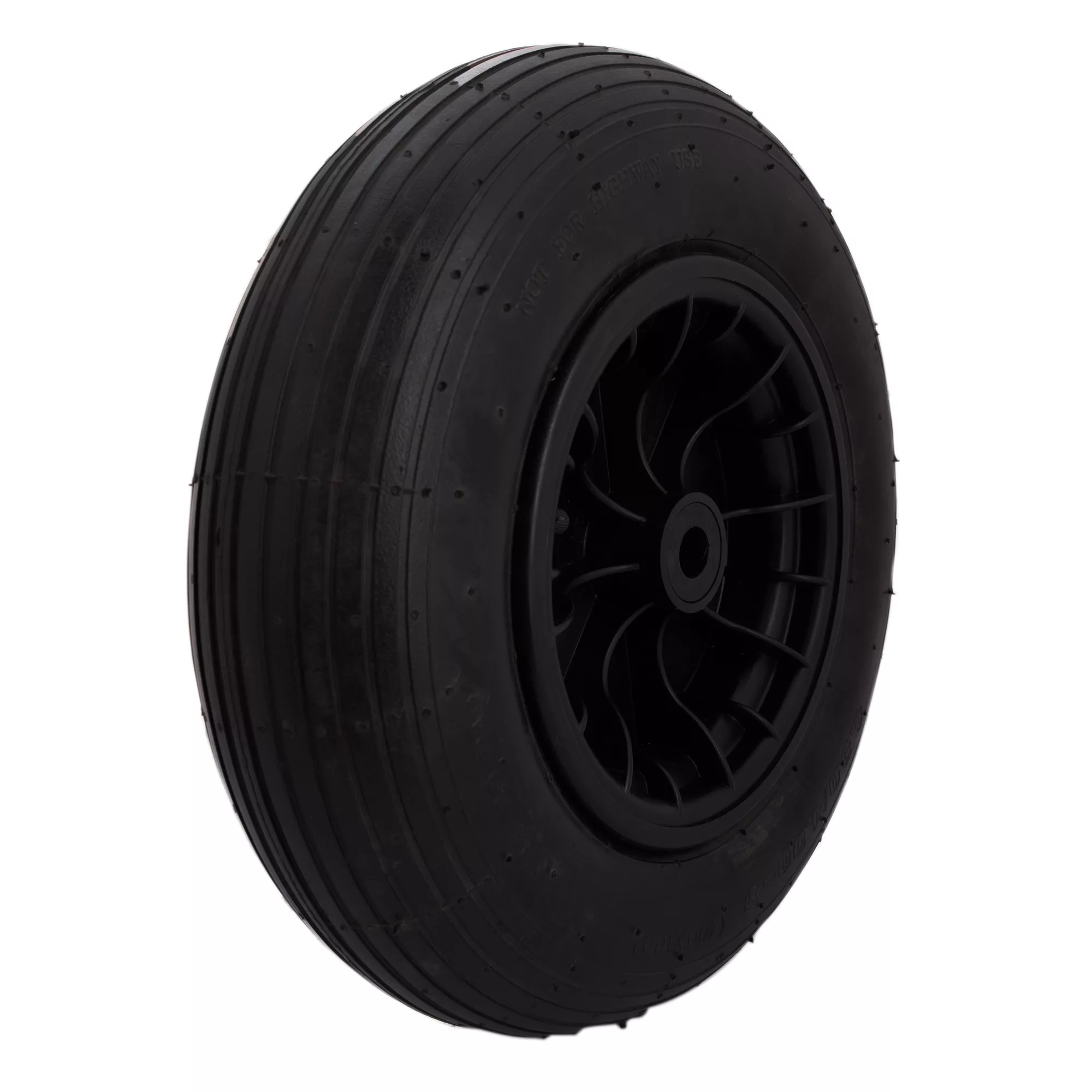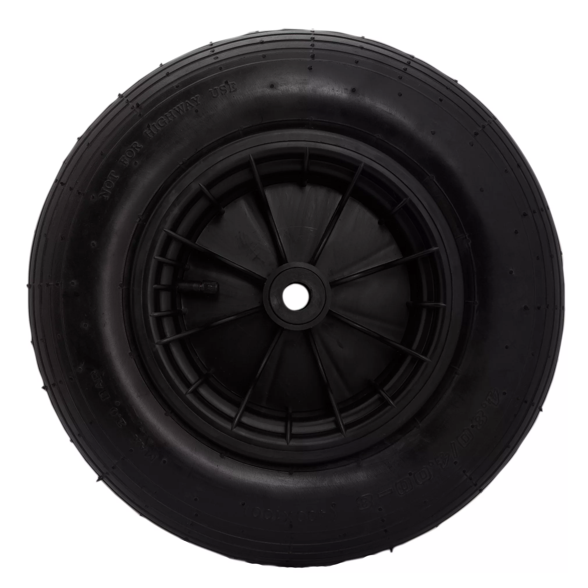 Pneumatic rubber wheel ideal for high performance trolley applications. High performance rubber offers excellent rolling quality, shock absorbency and are excellent for use on uneven ground