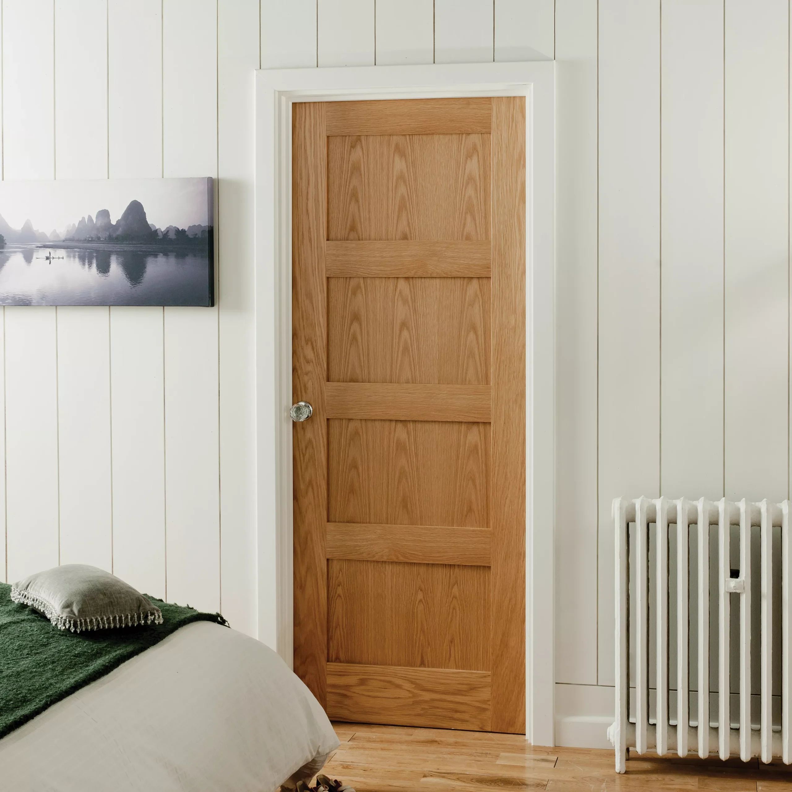 A chic white shaker door that effortlessly divides rooms. Its 4-panel design and ready-to-paint finish fit any style. Crafted from sturdy wood, this budget-friendly indoor door evolves with your dynamic lifestyle.