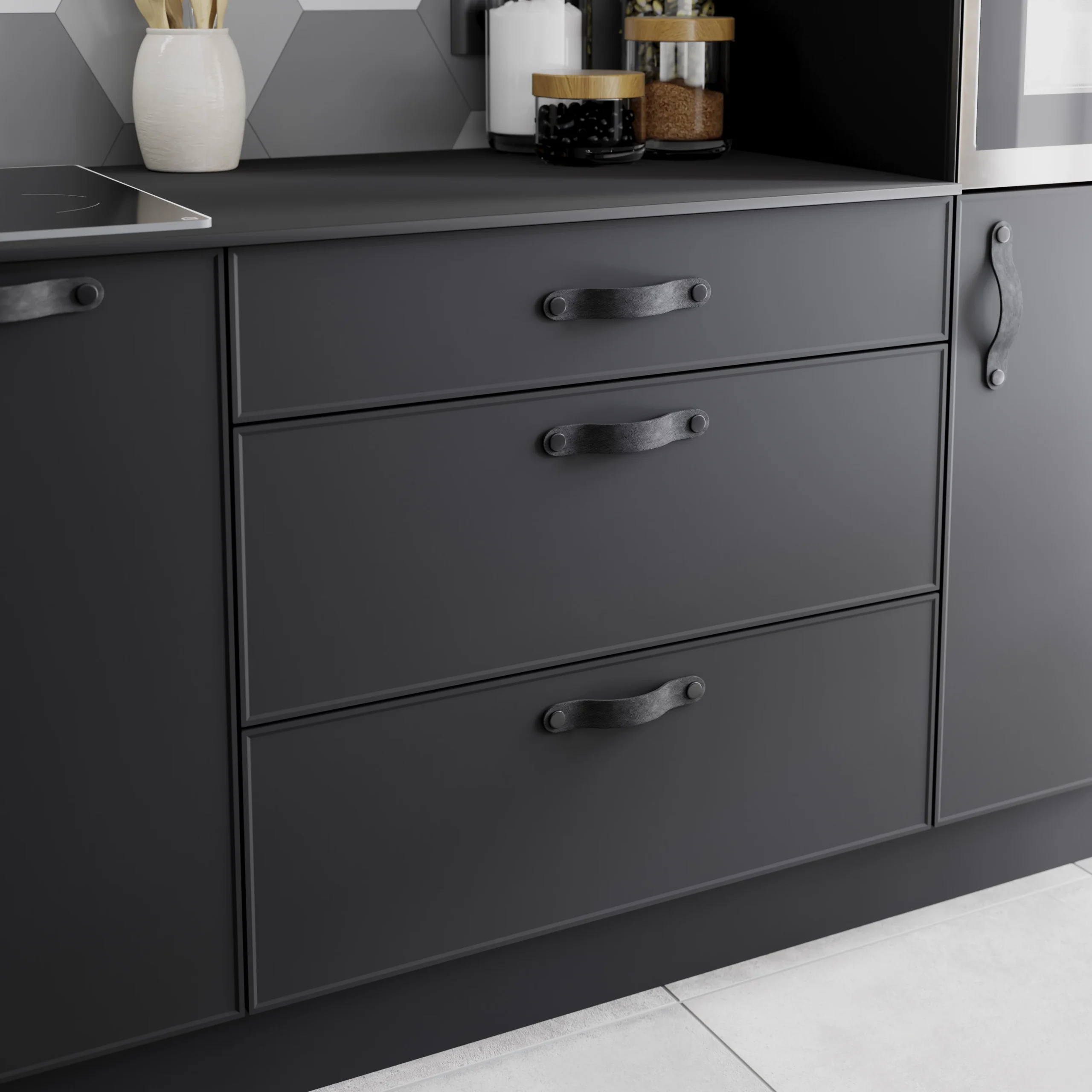 - On-trend leather handle