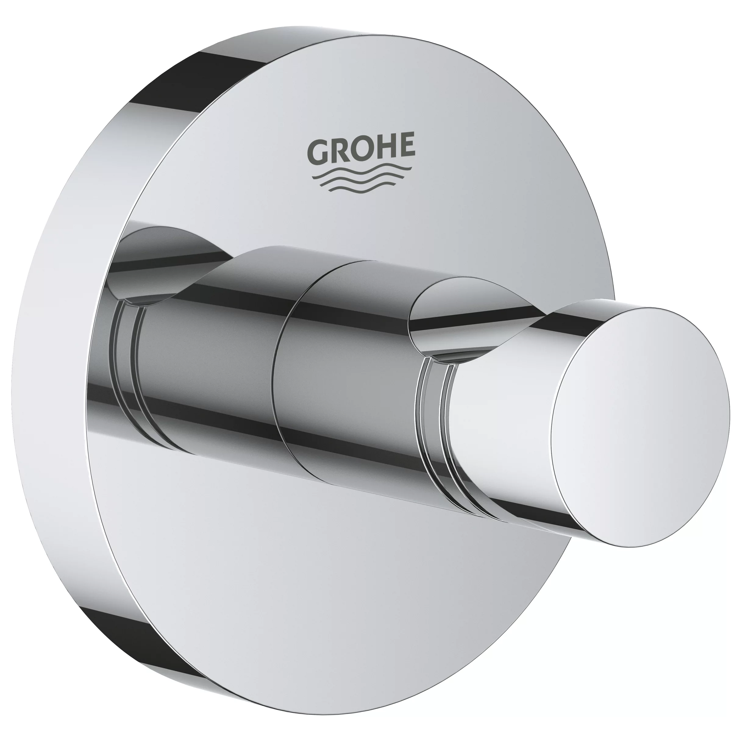 Bathroom style is all about luxury and easy convenience. This beautifully developed collection of Grohe Essentials accessories includes the sturdy robe hook – the ideal place to hang a dressing gown. The German engineered hook, which is set on an attractive circular plate, has a durable, easy-care Grohe StarLight chrome finish that will sparkle for years and it’s also easy to fit – just follow the clear step-by-step instructions. Why not create a harmonious look by adding other products from the comprehensive collection such as the toilet brush set, toilet paper holder and numerous towel rails and bath grips. Or why not try one of our matching all-in-one sets? Grohe Essentials accessories – precision craftsmanship, highest quality materials and design that lasts!