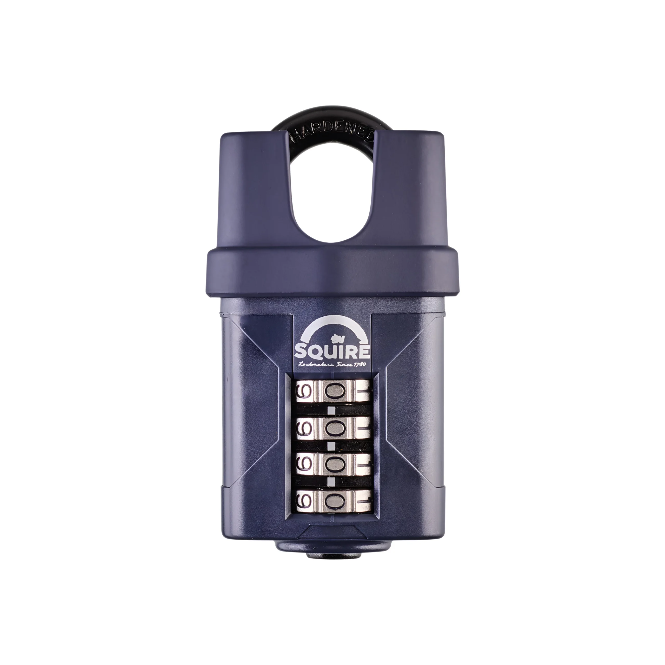 - Steel body with hardened steel shackle